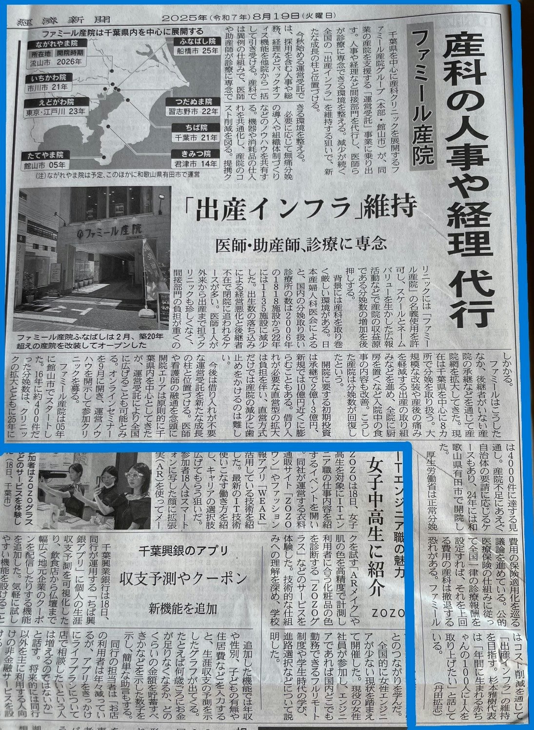 日本経済新聞(千葉版)にファミール産院グループの記事が掲載されました。グループの今後のフランチャイズ展開に向けた取り組みについて記載されております。